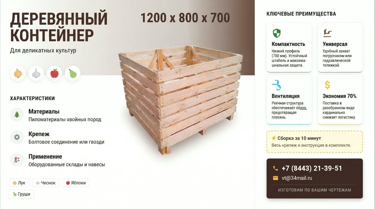 Идеальный контейнер для хранения лука, чеснока и яблок: его высота 700 мм обеспечивает компактное и бережное хранение чувствительных культур с оптимальной вентиляцией со всех сторон.